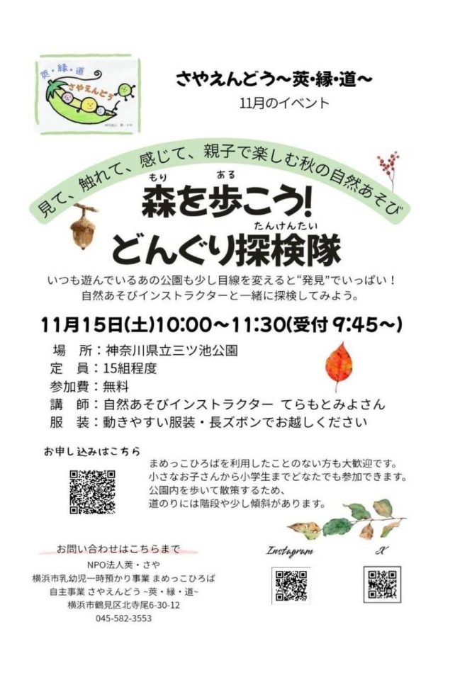 自然遊びインストラクター・てらもとみよさんと一緒に、森の中で親子の“わくわく”を探してみませんか?
