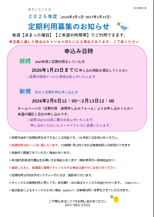 2026年度の定期利用を募集します。